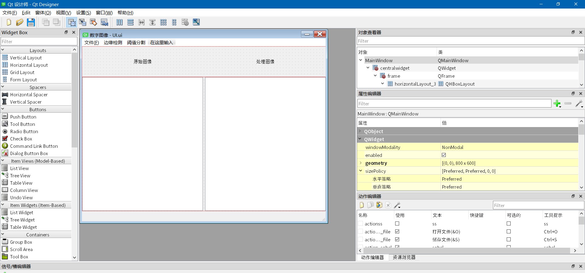 参考 pyqt5 从本地选择图片 并显示在label上 QT官方文档:QGraphicsView How to display a Mat image in Qt Python PyQt5.QtWidgets.QGraphicsScene() Examples 解决QLabel显示图片扭曲的问题 Opencv 随笔1------ 图片的读写(png jpg) opencv 报错’depth’ is 6 (CV_64F)全因numpy 默认float类型是float64位 OpenCV - 最大熵分割 PyQT5速成教程-2 Qt Designer介绍与入门